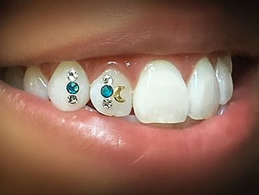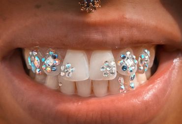 At Nova Grillz we specialize in creating exquisite adornments and personalized smiles. We apply Swarovski crystals, authentic gold charms, and precious gemstones to enhance our clients' teeth. Each gem lasts for months to years, adding spunk and individuality to your smile. We also offer custom gold grillz handcrafted by Madeline made from precious metals to complement your unique smile with bespoke designs. At Nova Grillz, we believe in bringing your smile to life with personalized adornments.