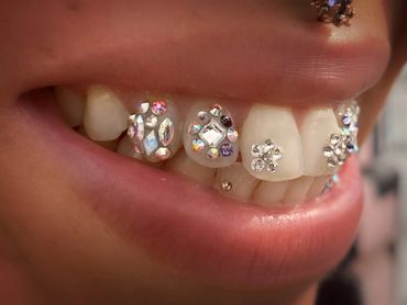 At Nova Grillz, formerly known as GypsiSmiles Tooth Jewelry, we celebrate l decade of creative expression and transformative smiles, guided by the visionary owner, Madeline. With a background rooted in dental care, Madeline's journey into adorning smiles with tooth gems is a testament to her deep-seated passion for crafting captivating experiences. Each client's smile is a canvas for Madeline's artistry, a fusion of creativity and care that not only enhances smiles but also uplifts confidence.